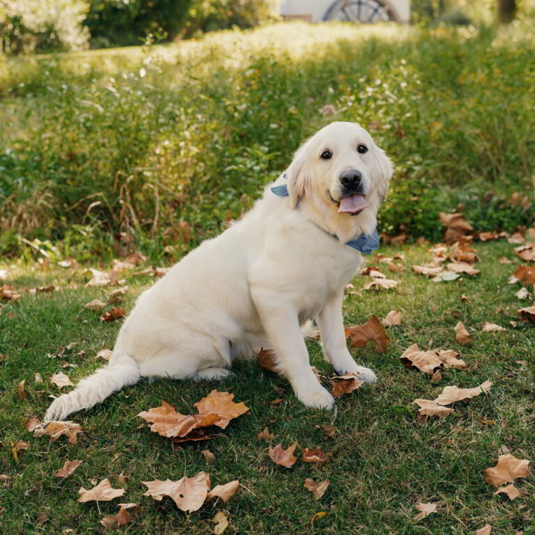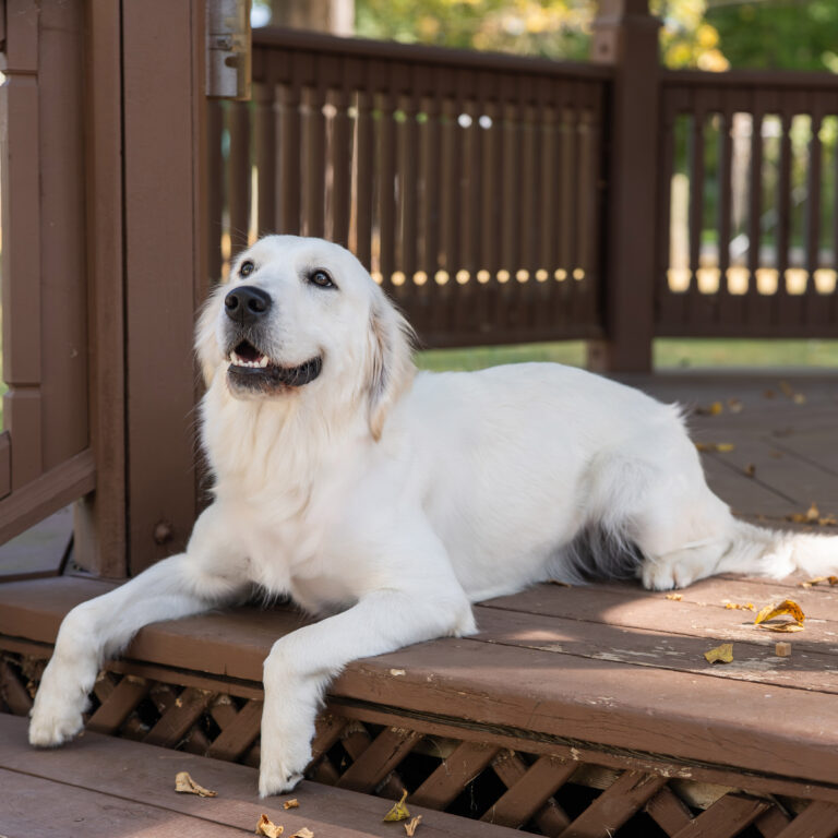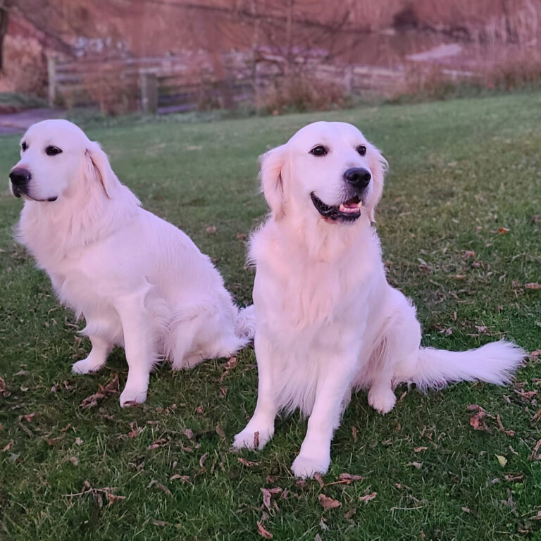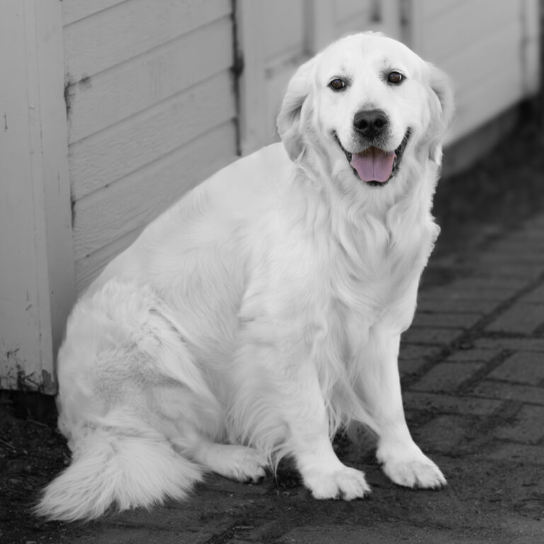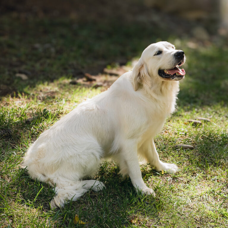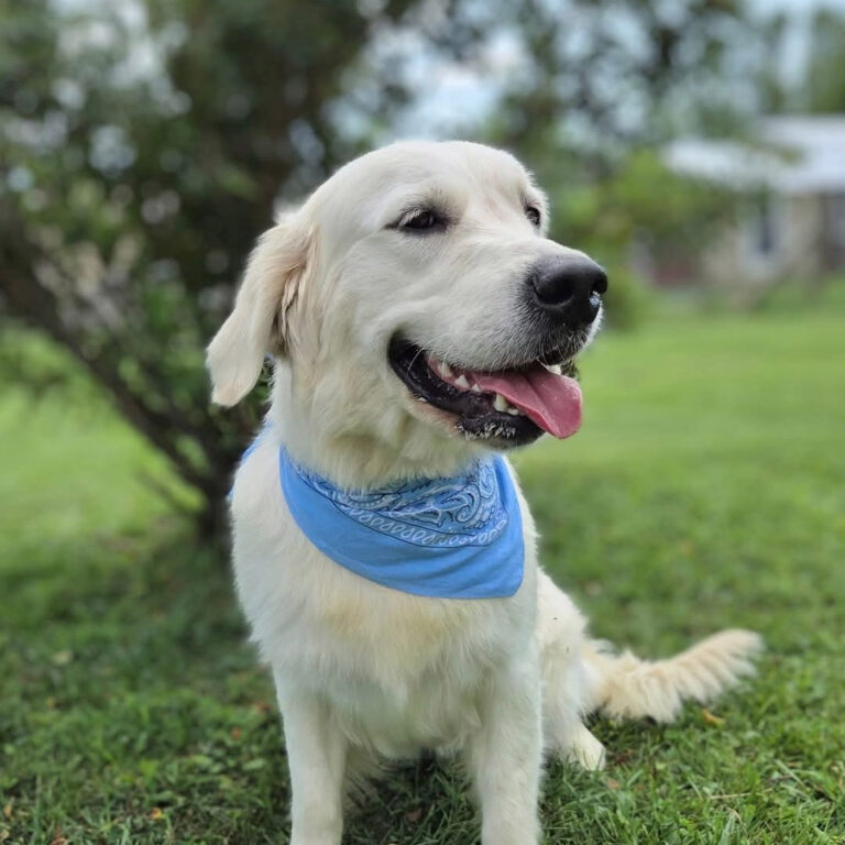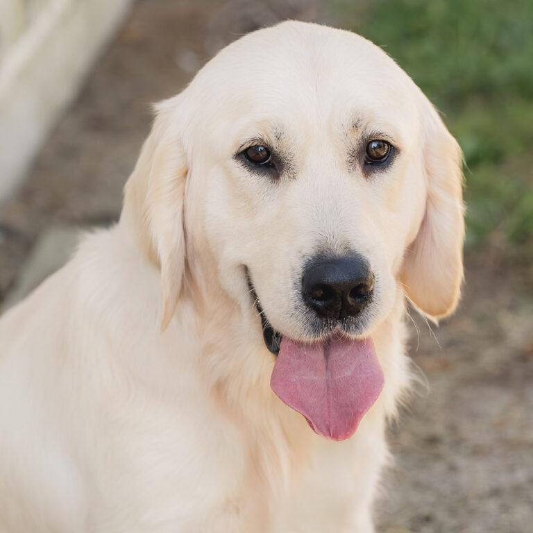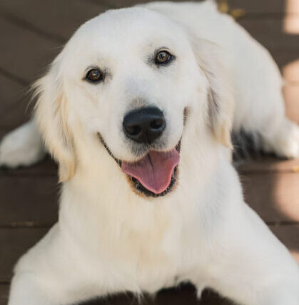 Jangle, known as Hzuston Bear Of Gold, is a prized Serbian addition to Elite White Goldens. Boasting over 15 generations of health tested champion lineage. He is admired for his intelligence, charm, and top-notch health. Jangle is a solid 77#s, has a blocky head with a white stocky body. His coat is wavey and soft and glistens in the sun. He is very smart and a caregiver to his humans. Meaning he waits to see what you want from him next. He is a shadow to his humans as well as a lap dog. Jangle is a proven stud. He does natural and with collecting semen.