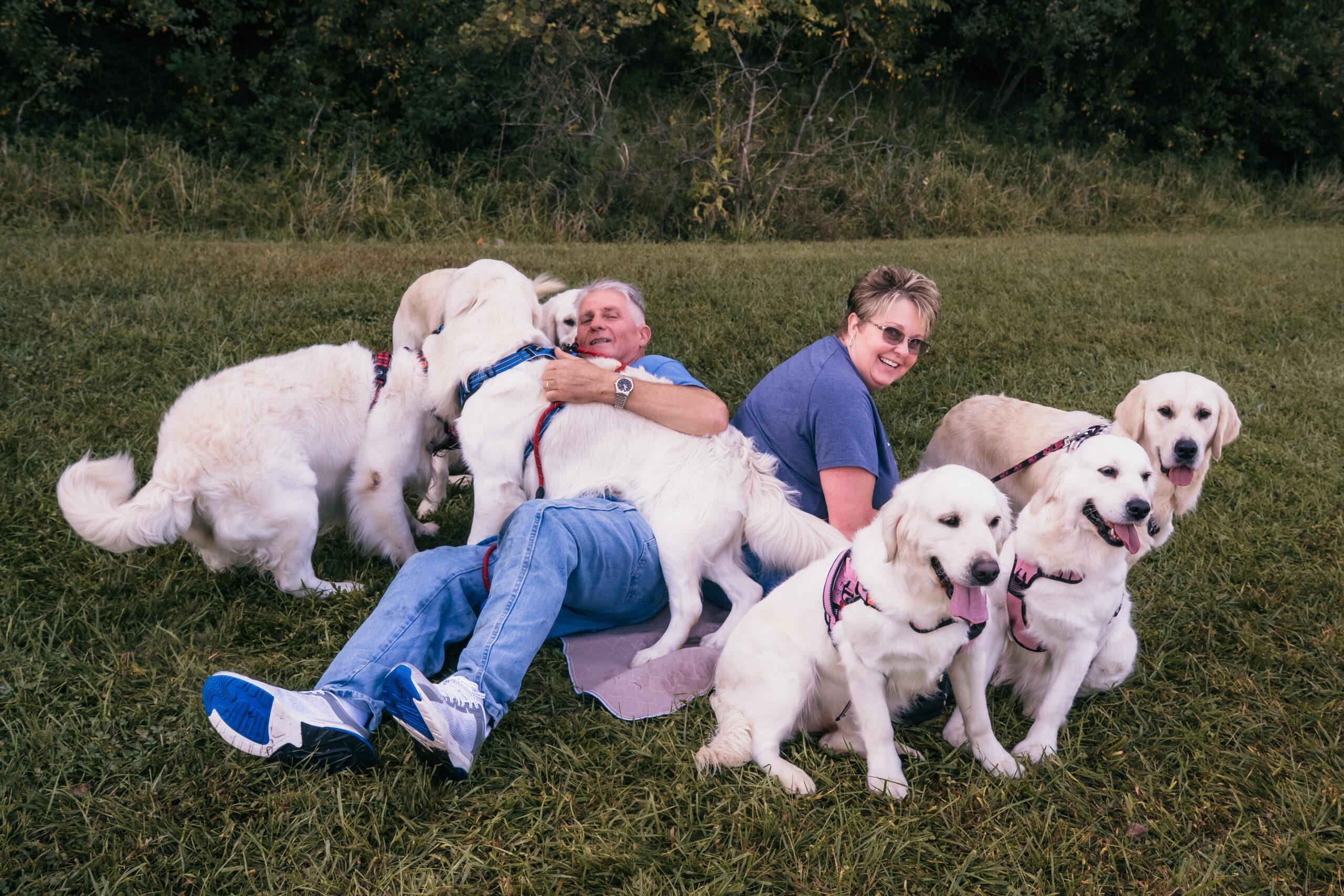 We breed top-quality Golden Retrievers through a careful selection and comprehensive training program, which includes in-depth potty and leash training, obedience lessons, and exposure to various public settings. This ensures the production of reliable and well-adapted service dogs that are a joy to be around.