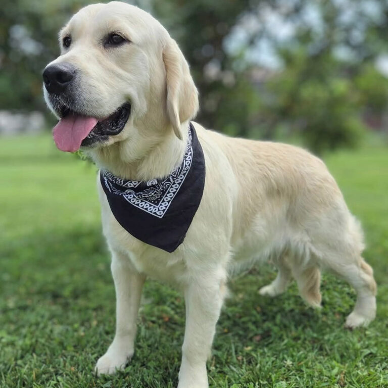 Introducing Sadie, known as Eshley Zolotaya Nitochka from Ukraine. Sadies pedigree is full of European championship lineage with generations of health testing. Sadie weighs 72-pounds and is an absolute joy. With her beautiful blocky head to her smooth cream coat. She is a real stand out. Sadie is fully health tested. We are very excited to add Sadie to our breeding program and family. Sadie is a caregiver to her humans, as she always waits to see what you want her to do next.